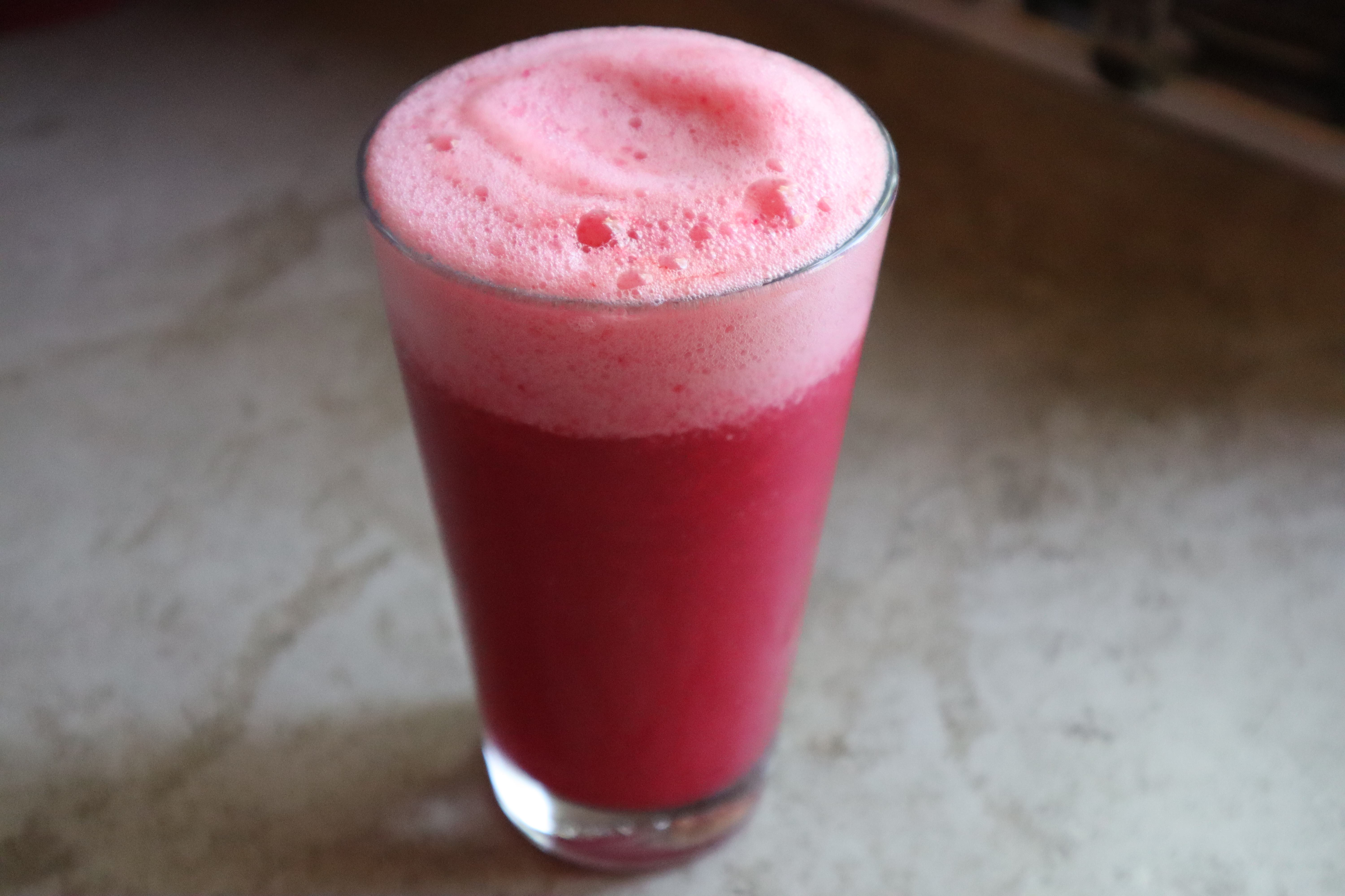 RE: Rohkostrezepte - Pamina - 27.06.12019 Erfrischendes Sommergetränk Zur Zeit trinken wir dieses schnelles Getränk fast täglich: Zutaten: 1/4 Wassermelone (je nach Größe der Melone), gekühlt 1 halbe Zitone, geschält eine Dattel oder 1 Esslöffel Apfeldicksaft etwas Wasser Variationen: 1 Stückchen Rote Beete, ca. 1 cm dick 1 Stückchen Kurkuma von der Knolle 1 Stück Aloe Vera, ca. 5 cm dick, von einem ganzen Blatt abgeschnitten Zubereitung: Die Melone in Stücke schneiden (ohne Schale), mit der geschälten Zitrone und der Dattel in den Vitamix geben und alles pürieren. Mit Minze garnieren. Ich persönlich mag das Getränk mit einem Stück Aloe Vera und einem Stückchen Rote Beete am liebsten. So wie auf dem Bild! Schmeckt sehr erfrischend und gibt sofort Energie. Und die Farbe ist klasse!