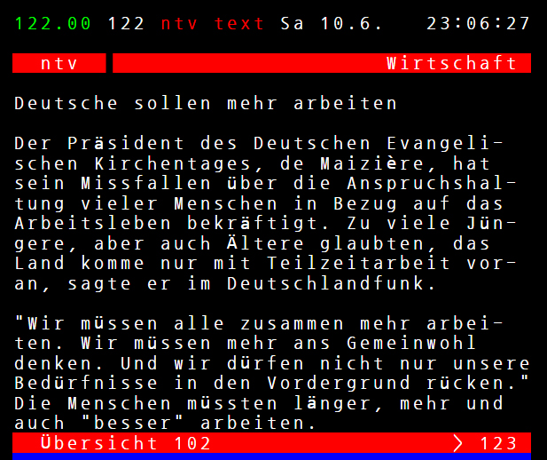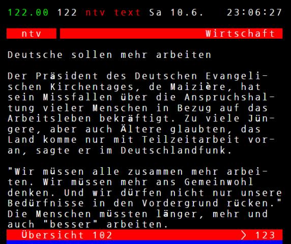 Der ehemalige Innenminister Thomas De Maizière ist jetzt der Präsident des Kirchentages. Er ist der Meinung, die Deutschen sollen gefälligst mehr arbeiten und nicht immer nur nörgeln und Ansprüche stellen! Ich finde das nur noch zum k ...