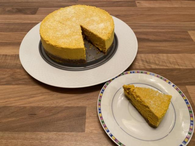 Ich konnte mir zuerst auch nicht so recht vorstellen, wie das schmeckt, war aber vom Ergebnis begeistert. Es schmeckt sehr lecker und erfrischend, den Kürbis merkt man gar nicht wirklich. Allerdings muss man Kokos mögen, denn das Kokosöl gibt den Kuchen seine Note. Es wird wie bei vielen Rohkost-Süßspeisen als Stabilisator verwendet, da es bei niedrigen Temperaturen (Kühlschrank) fest wird. Ich werde bei Gelegenheit mal versuchen, statt dessen Irish Moss einzusetzen und darüber berichten.
