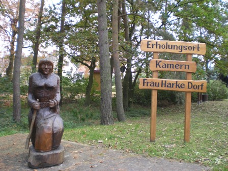 Ausgangspunkt des Sagenpfades ist am Ortseingang von Kamern ein knorriger Baumrumpf, die "Hedernicke", der Sage nach ihr alter Spinnrocken, also der Stab, an dem beim Spinnen die noch unversponnenen Fasern befestigt werden. Diesen Spinnrocken hat Frau Harke in eben diesen Boden gepflanzt. Von dort geht es hinauf in die Kamernschen Berge bis zur Teufelskanzel (109 m), wo Frau Harke Recht über Mensch und Tier gesprochen haben soll.