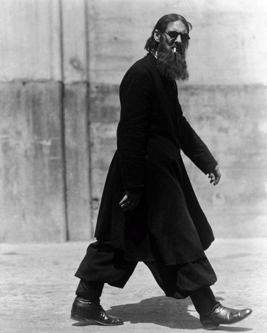 Ein Photo Rasputins? Seine Tochter Maria behauptet, es handele sich bei diesem Photo um die Aufnahme eines Doppelgängers. Dieser Doppelgänger hatte die Aufgabe, als "Provokateur" ihren Vater durch skandalöses Verhalten in der Öffentlichkeit in Mißkredit zu bringen. Der Mann soll Schauspieler und Geheimagent gewesen sein.