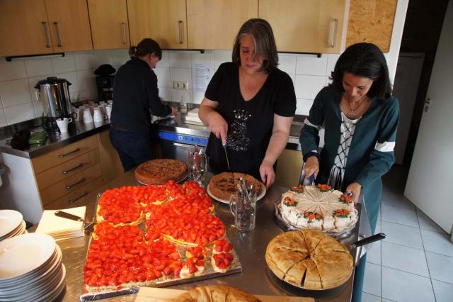 Der Kuchen in der Mitte ist der schwedische Kladdkaka-Kuchen.