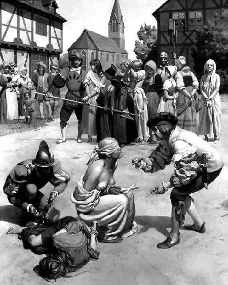 Im Mittelalter wurde die Folter zur allgemeinen Begleiterscheinung der Rechtsfälle, die mit Glaubensdingen zu tun hatten. Die überlieferte vorChr*stliche Rechtsprechung lehnte den Gebrauch der Folter ab und erachtete einen Angeklagten so lange für unschuldig, bis seine Schuld durch die Strafverfolgung zweifelsfrei erwiesen war. Chr*stliche Kreuzritter und Inquisitoren kehrten das alte heidnische Rechtsverfahren um. Der Gebrauch der Folter durch die Inquisition machte jeden Beweis der Unschuld unmöglich. "Keine Macht der Welt konnte den Gefangenen retten, er war verdammt."