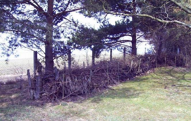Gleich am Wäldchen im Sumpf hinterm Häuschen, hab ich mir junge Eichen und Birken ausgesucht und hab es dazwischen geschichtet. Weis nun nicht ob es so eine "ordentliche" Benjeshecke ist.