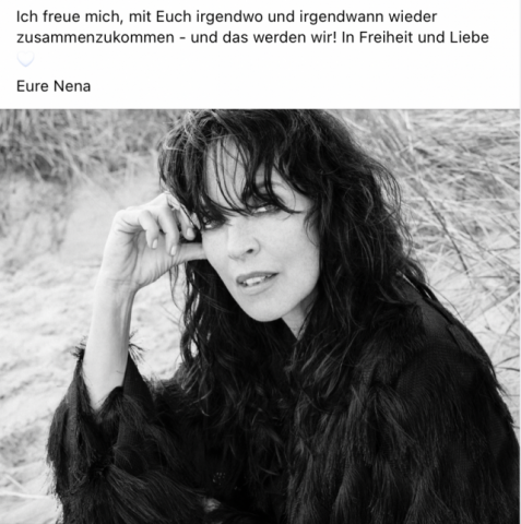 Nena läßt sich durch das Corona-Regime nicht einschüchtern und steht offen für die Freiheit ihrer Fans ein. Weil Sie versprochen hat, daß auf NENA-Konzerten ALLE willkommen sind, sagt sie ihre Tour für 2022 komplett ab. Denn die Corona-Diktatur verbietet das. NENA Fans gefällt das: „Respekt für dich. Du bist Top!“