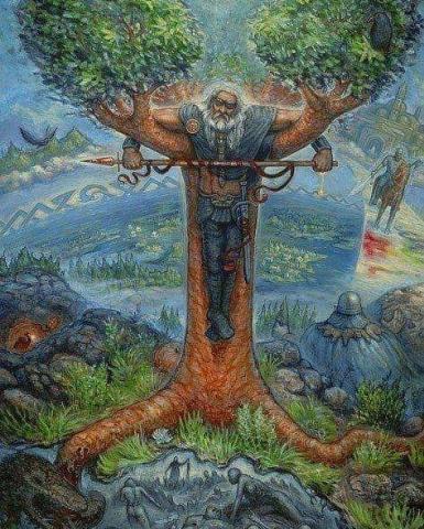 In der germanischen Geschichte hat sich Odin am Weltenbaum Yggdrasil aufgehängt, neun Tage und neun Nächte lang – als Opfer an sich selbst.