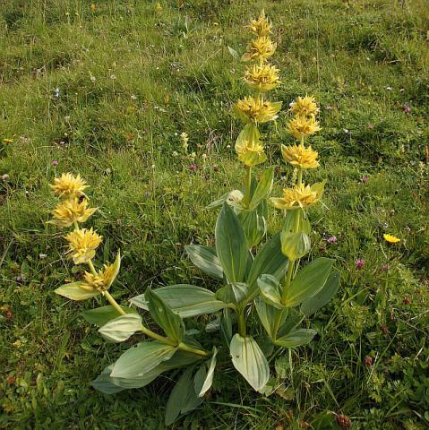 Der Gelbe Enzian gedeiht vor allem auf kalkhaltigen Böden in den West- und Südalpen sowie in den Bergländern Mittel- und Südosteuropas.