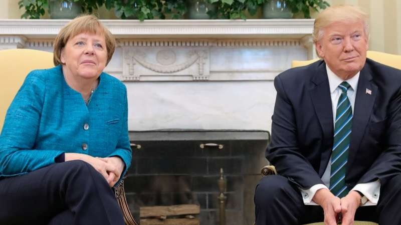 „Zumindest in dieser Hinsicht haben wir etwas gemeinsam“, sagte Trump und deutete zu Bundeskanzlerin Merkel hinüber. Er spielte damit auf den Abhörskandal während der Amtszeit von Obama an, als Merkels Handy zum Ziel amerikanischer Lauschangriffe geworden war.