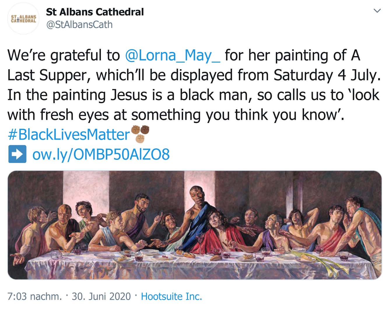 Black-Lives-Better - Manie. Nun ersetzt eine Kirche in Großbritannien eine Krippenszene durch ein Letzes-Abendmahl-Gemälde, auf welchem Elvis Presley als Schwarzer dargestellt wird.