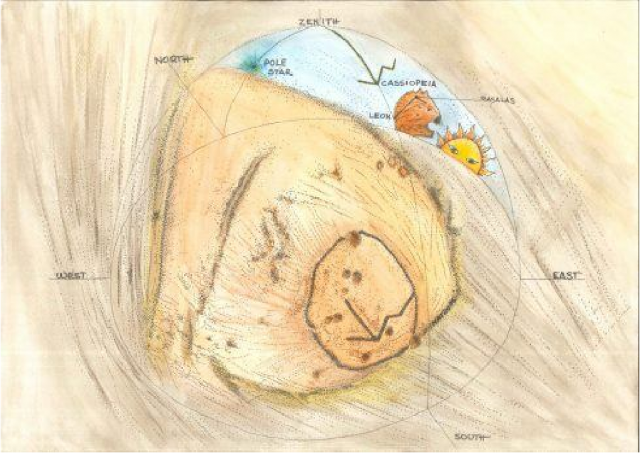 Bei der astronomischen Erforschung hat man festgestellt, daß der Hügel auf das Sternbild Casiopeia ausgerichtet ist.