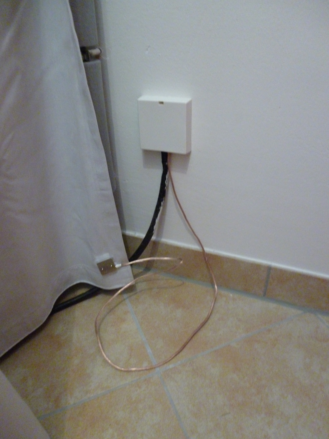 Auch wenn in den anderen Räumen durchaus sehr unterschiedlich hohe HF-Belastungen noch gemessen werden können, haben wir es geschafft, unseren Rückzugs- und Ruheraum davon nahezu zu befreien. Das war also erfolgreich auf ganzer Linie und für einen Bruchteil des Geldes eines Baldachins zu realisieren. Ich habe auch nicht alle Zubehörteile des Herstellers verwendet (siehe Alu-Bänder und Erdungsanschlüsse), sondern mich mit Alternativen aus dem heimischen Baumarkt sehr gut beholfen. Das spart Geld und funktioniert genauso. Meiner Liebsten ist im übrigen aufgefallen, daß sich seit der „Sanierung“ wesentlich weniger Staub unter unserem Bett ansammelt (obwohl genauso oft sauber gemacht wird wie auch vorher