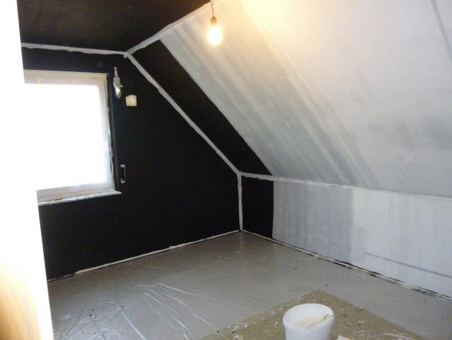 versetzte uns in Schrecken, zumal das Dachgeschoß mit Schlafzimmer gerade erst saniert wurde, also größere Umbauten außer Frage standen. Da ich aus dem Elektro-Fach komme, habe ich mir also so meine Überlegungen angstellt, was das soll und bin zu der Erkenntnis gelangt, daß es sich bei den hohen (und vor allem stark schwankenden Werten) hauptsächlich um Reflexionen innerhalb des Gebäudes handeln mußte, da der draußen gemessene Wert weit unter dem der Innenräume lag. Ich begann mich also umfassend zum Thema E-Smog-Sanierung kundig zu machen und bin letztlich bei der Firma y-shields im Internet hängengeblieben, welche manigfaltige Möglichkeiten von Baldachinen aus speziellem Schirmgewebe bis hin zu Abschirmmatten für den Außenputz als Lösung anbietet. Eine Möglichkeit hat mir jedoch am ehesten zugesagt – das Auftragen einer sogenannten Abschirmfarbe. Dabei handelt es sich um einen Anstrich aus Kohlenstoff mit einem Bindemittel. Die ganze Brühe ist natürlich rabenschwarz. Ich war einigermaßen skeptisch, was den zu erwartenden Erfolg betraf, sah aber keine andere Möglichkeit, um uns der HF-Belastung im Schlafzimmer zu entziehen. Einen Baldachin aus Schirmgewebe wollten wir uns für weit über 1000,- Euro einfach nicht leisten, und es ist auch nicht jedermanns Sache, unter solch einem Dingens zu schlafen.