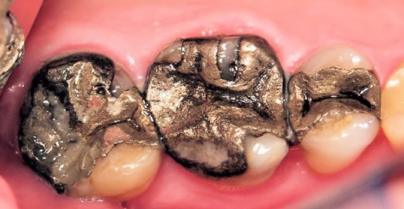 Schwarz verfärbte Amalgamfüllungen