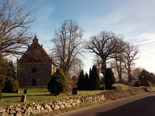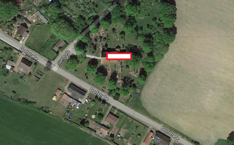 Der Ort Frauenmark hat es mir angetan. Ich recherchierte zuvor im Netz über den Ort. Interessant kam mir die Ausrichtung der dortigen K*rche vor. Man weiß ja, dass die Chri*ten bevorzugt ihre Ki*chen auf alte Tempel errichtet haben. Laut Internet ist die um 1230 gegründete Ki*che  eine der ältesten Ki*chen in Mecklenburg. Die Ki*che ist von Ost nach West ausgerichtet und steht, wie am Bild ersichtlich, nicht wie gewohnt an der Straße. Das Dehio-Handbuch bezeichnet sie als spätromanischen Feldsteinbau von seltener Einheitlichkeit. Hauptmaterial ist Feldstein, jedoch gibt es einige Bauelemente aus Backstein.