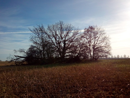 Eines habe ich davon aufgesucht. Es mitten in einem Ackerfeld. Eigentlich ein herrlicher Tag, aber Ruhe findet man an diesem Ort dennoch nicht.