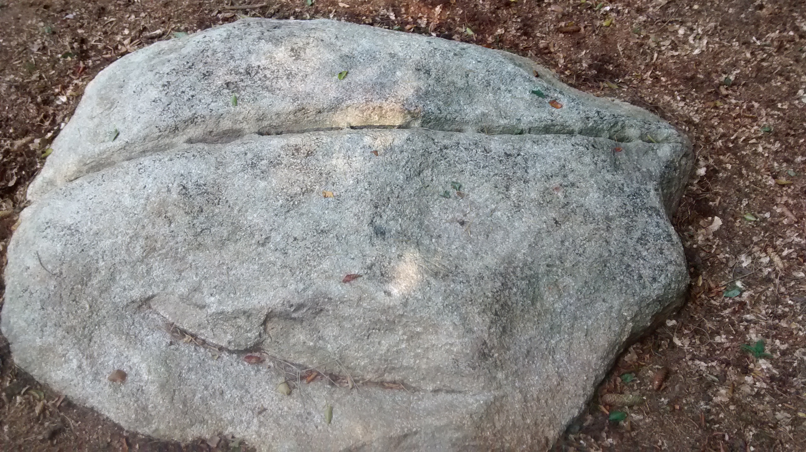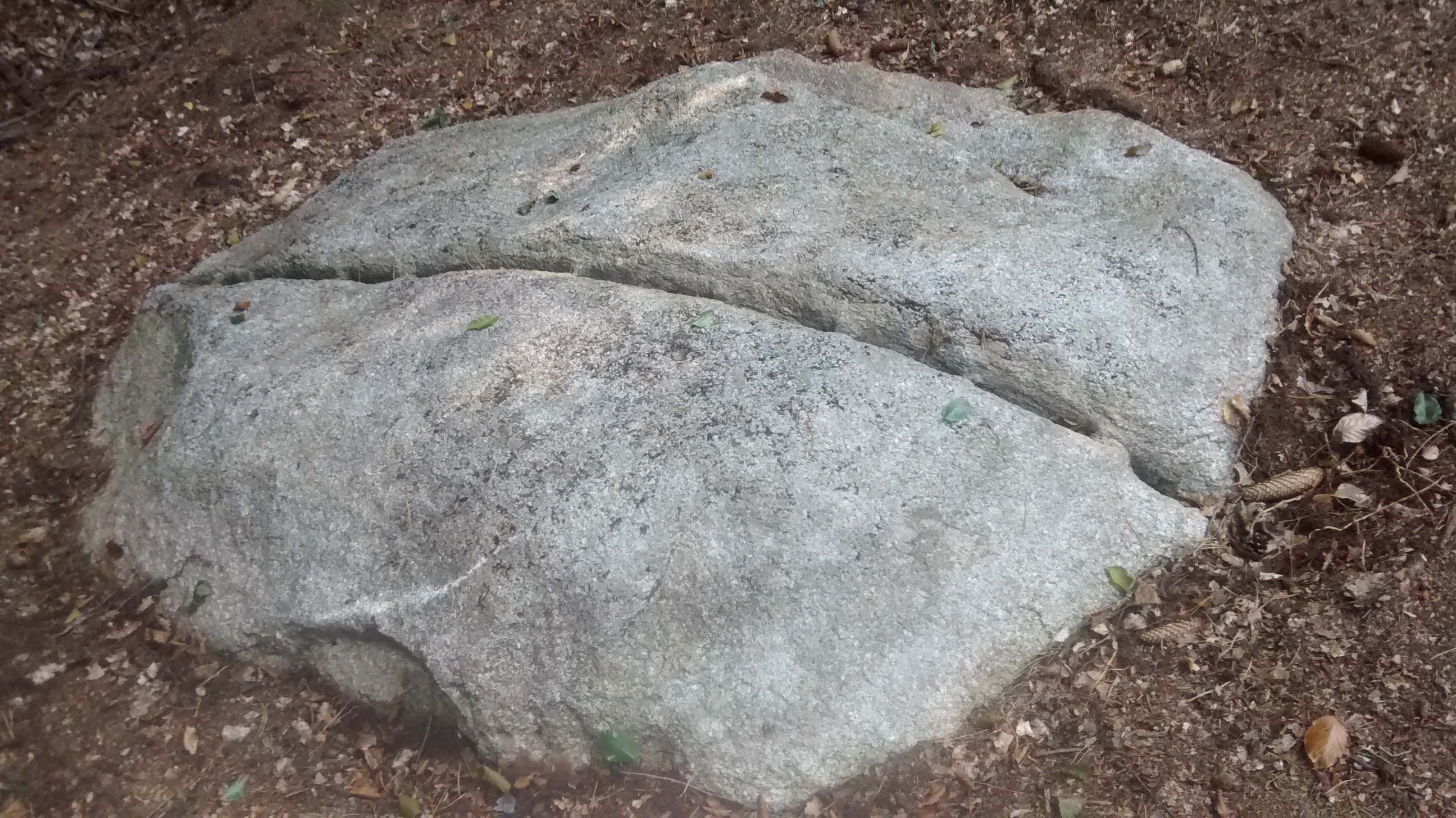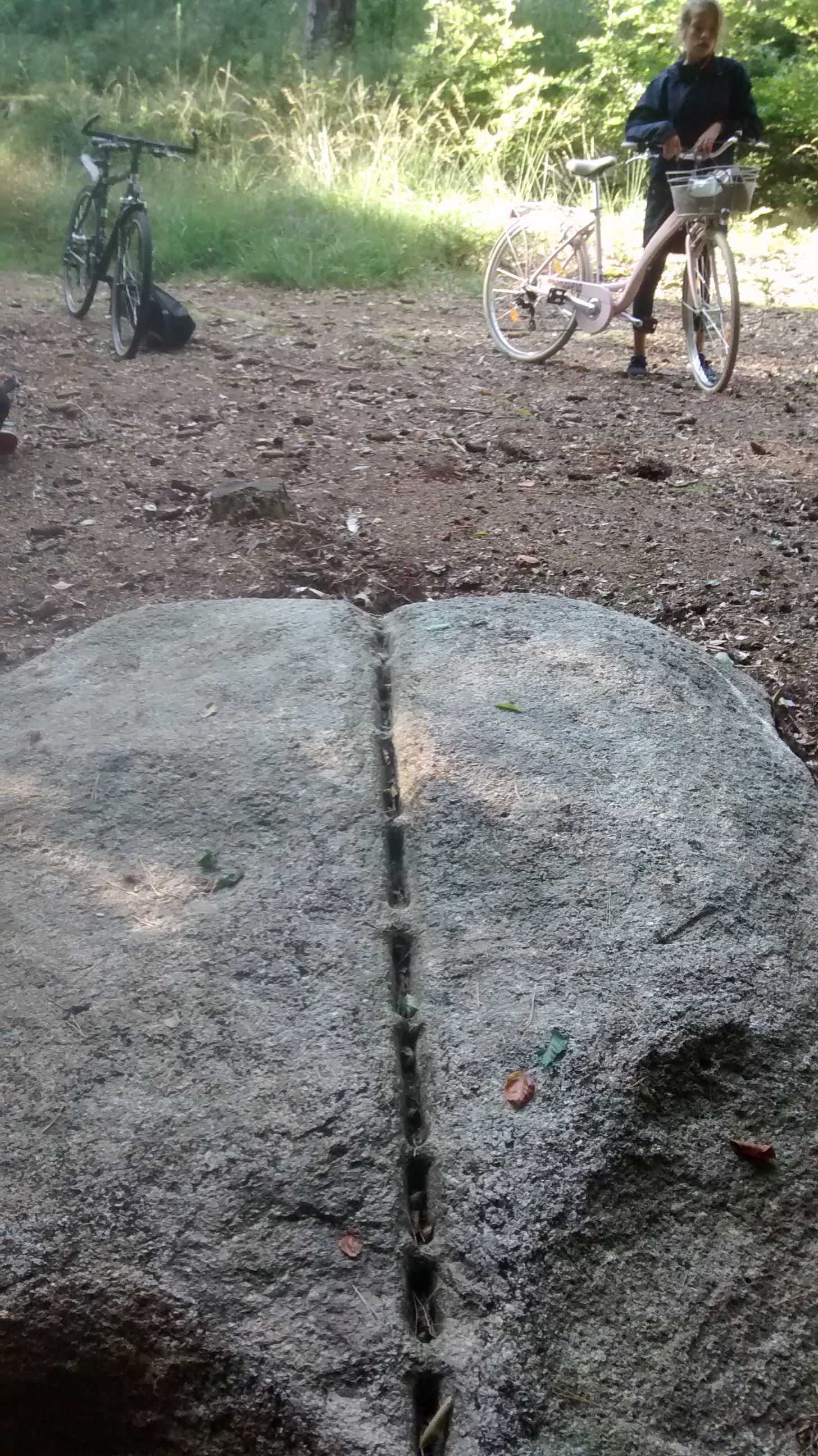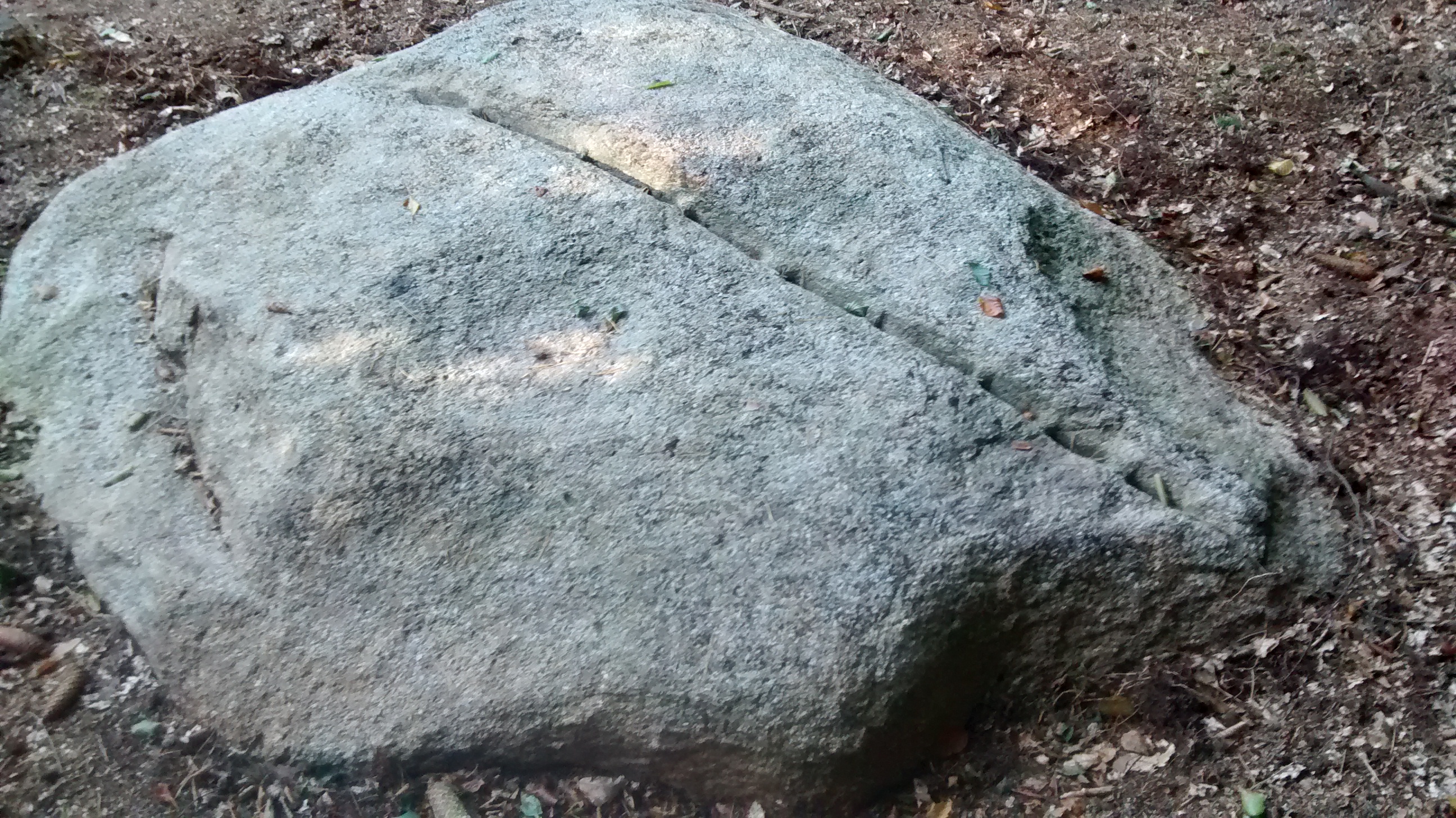 Wir folgten den schönen Waldweg zirka 800 Meter, bis wir mitten im Wald den besagten Brautstein fanden.