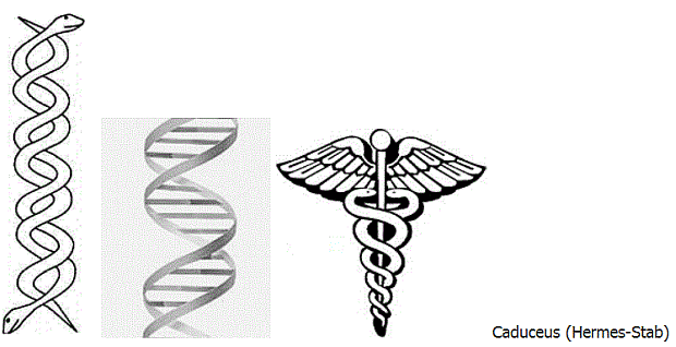Die Schlange hat viele Bedeutungen, u.a. ist sie auch das Symbol für Weisheit. Sie wird oft in zweifacher Form dargestellt - wie die Doppelhelix der DNS.