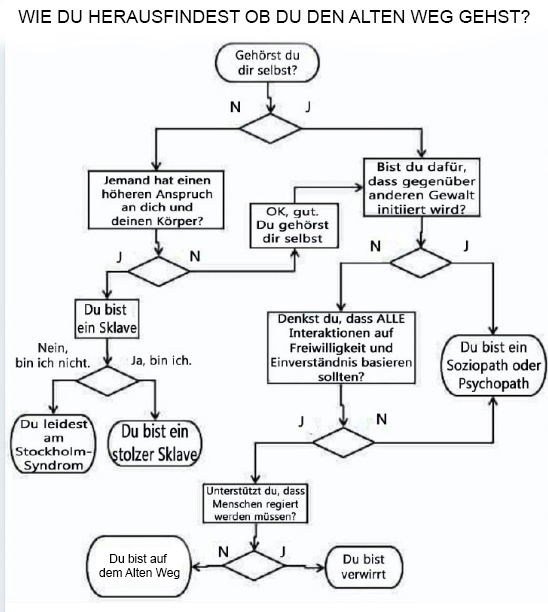 Also mein erster Gedanke ging auch in Richtung Anarchiebefürworter.Denn was würde passieren wenn niemand sich mehr an Gesetze gebunden fühlte?