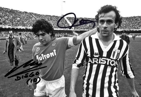 Daneben Michel Platini, der ebenfalls seinen Namen unterstreicht, aber auch (wie G. Netzer) zwei Krücken/Stützen erkennen läßt. Eventuell die damalige Abhängigkeit von seinem Berater. Eine aktuelle Unterschrift hierzu wäre interessant ...