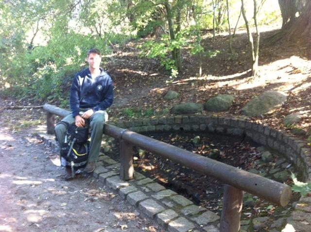 Auf der kleinen Brücke stehend rechter Hand die Quelle.