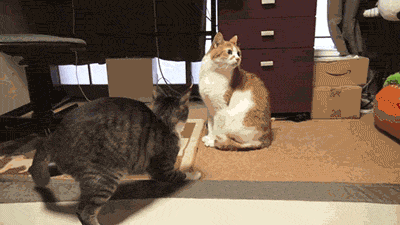 Natürlich können auch fröhlich schauende Katzen amüsant aussehen: