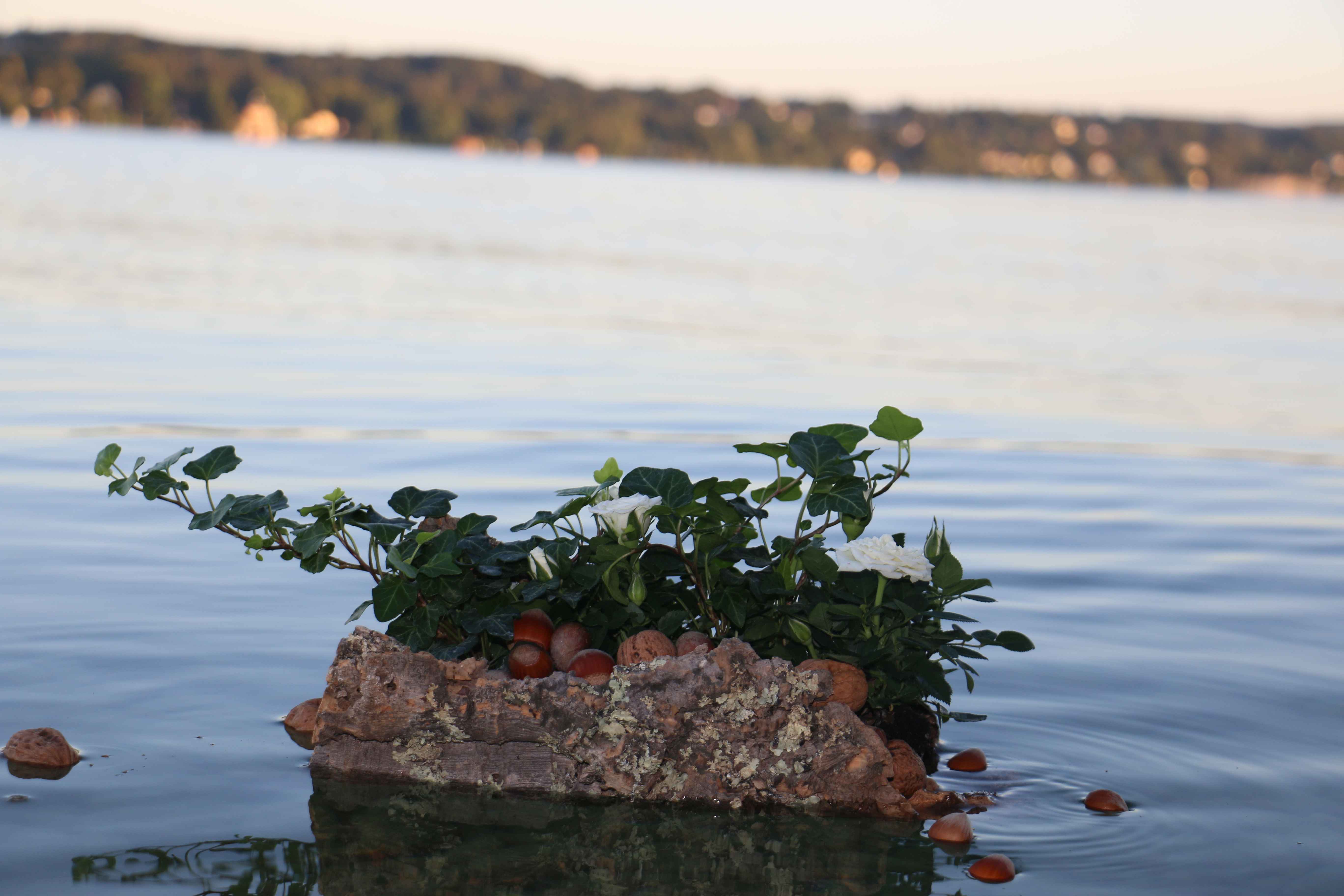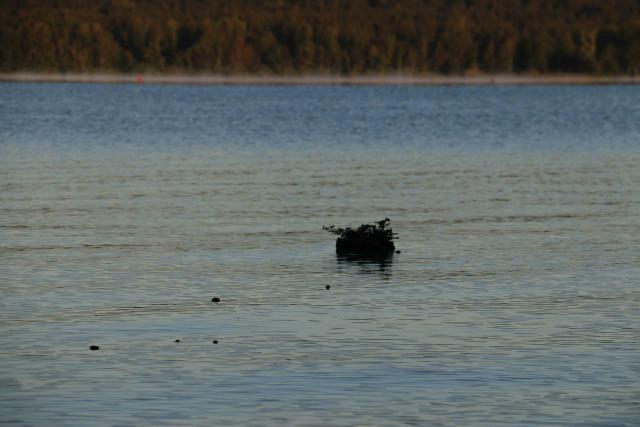 Sie trieb auf dem glatten See davon und hat dabei ab und an etwas Ballast in Form von Nüssen abgeworfen.