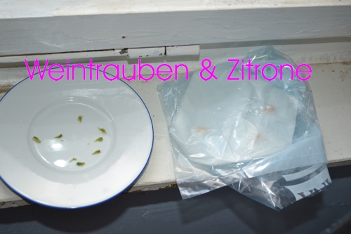 Auch dort vorsichtig die Kerne herauslösen und in Küchenpapier geben, nass machen und in eine Folie stecken. Und auch dort heißt es warten - warten - warten.
