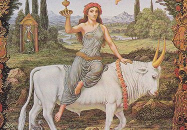 Die Stierhörner gelten als Mondsymbole der Großen Göttin. Der Mondkuh-Göttin Europa wurden auch weiße Stiere gebracht.