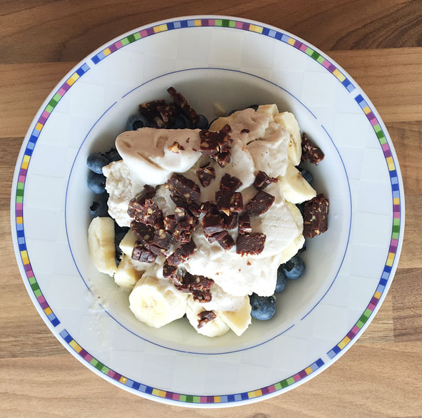 Hier noch ein leckeres Beispiel, wie man sich mit Rohkost den Tag versüßen kann.