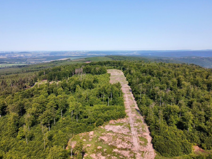 Durch Windkraft: Zerschneidung und Zerstörung großer Waldgebiete im Namen eines vorgeschobenen Klimaschutzes: Jahrtausend-Schäden, Schleifung von Biodiversitätszonen, Böden, Wasserreservoirs im Rheinhardswald.