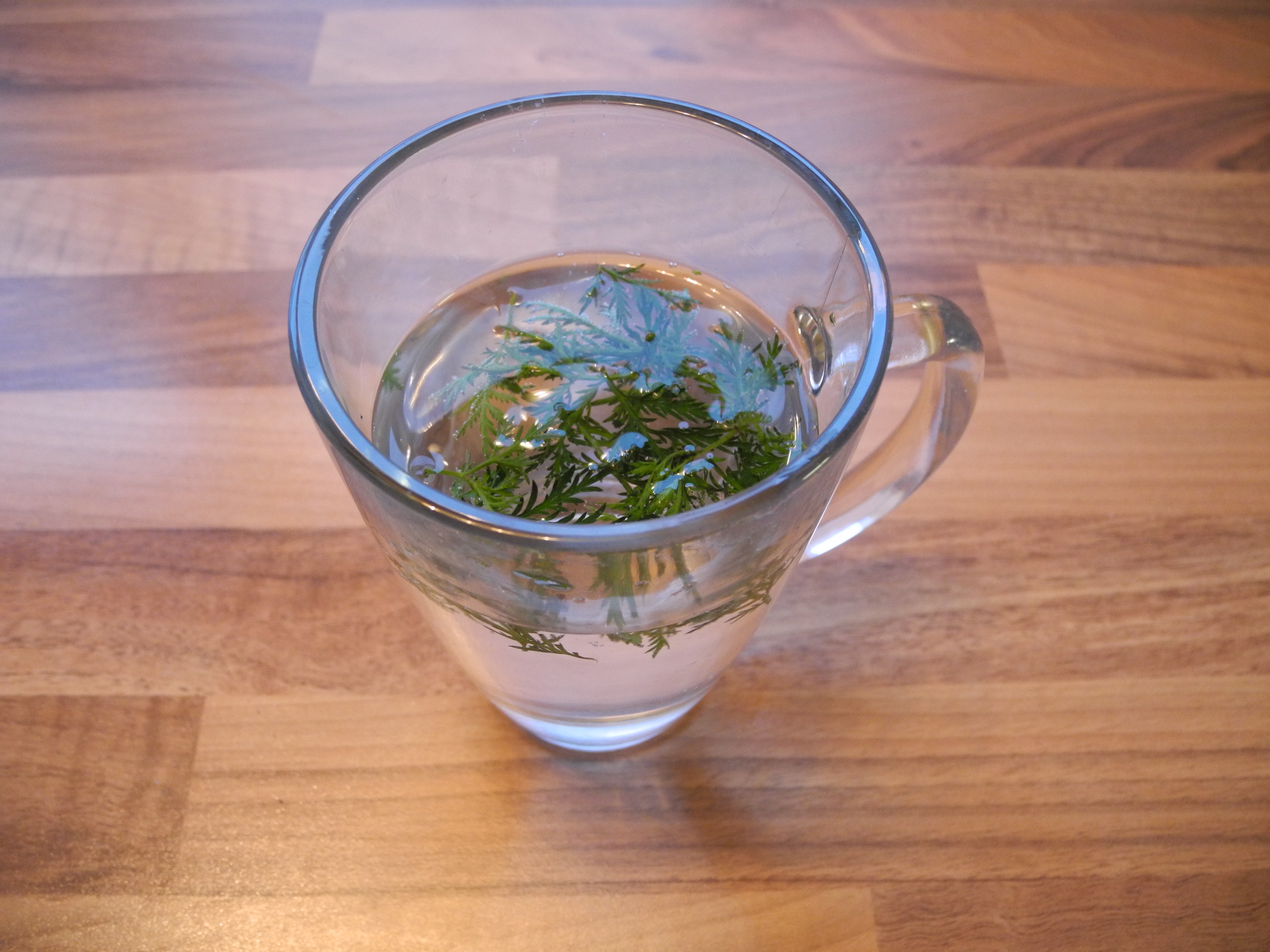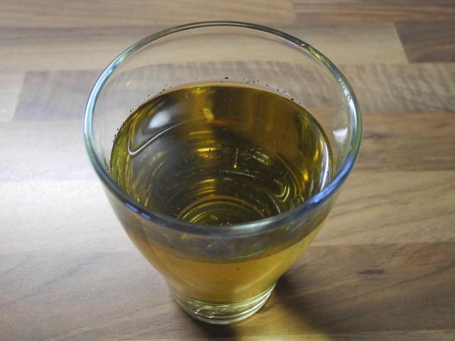 Das Wasser mit den getrockneten Kräutern hat eine schöne grüne Färbung bekommen.