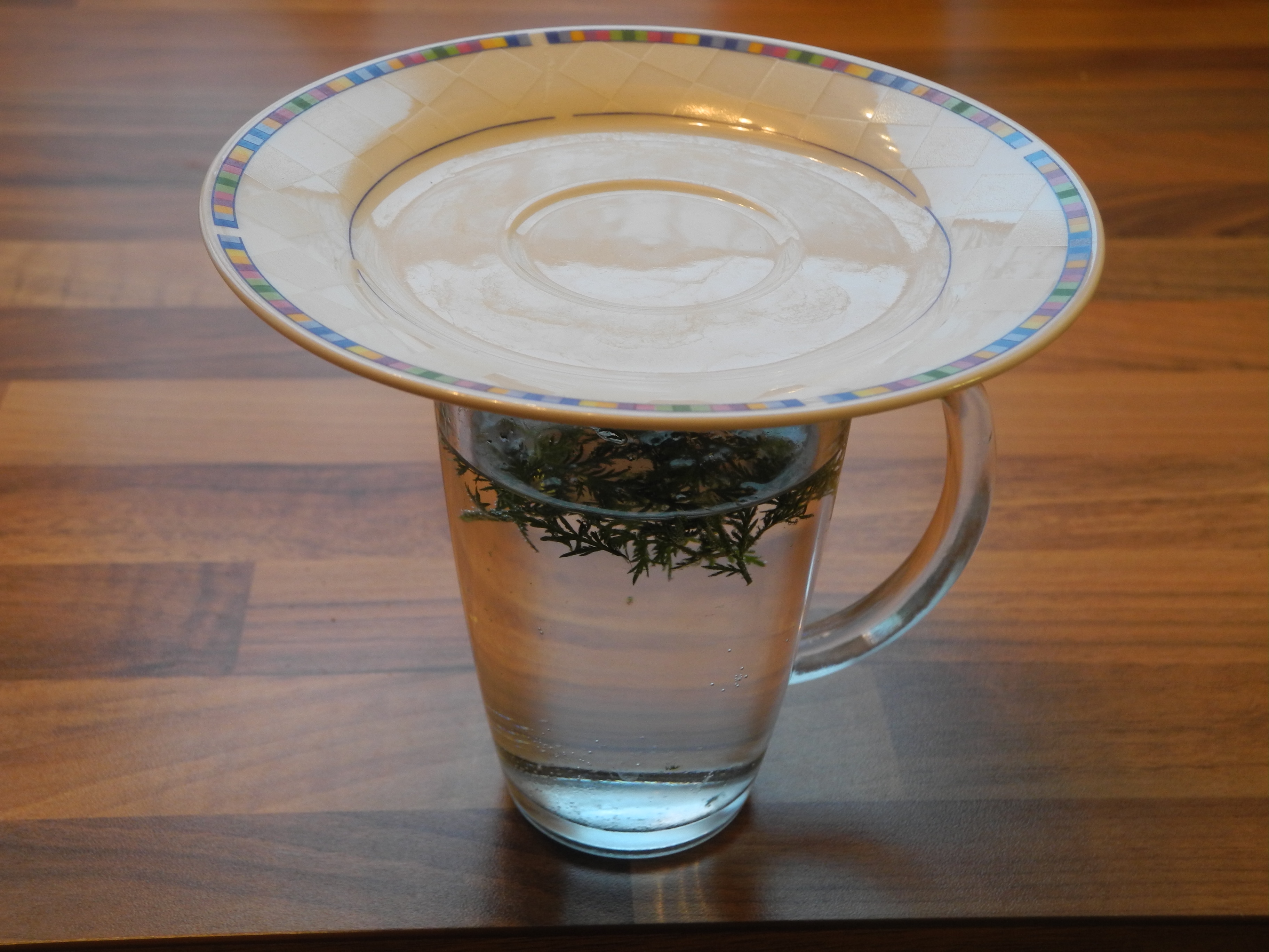 Tasse zudecken, damit eventuelle ätherische Öle nicht entweichen können.