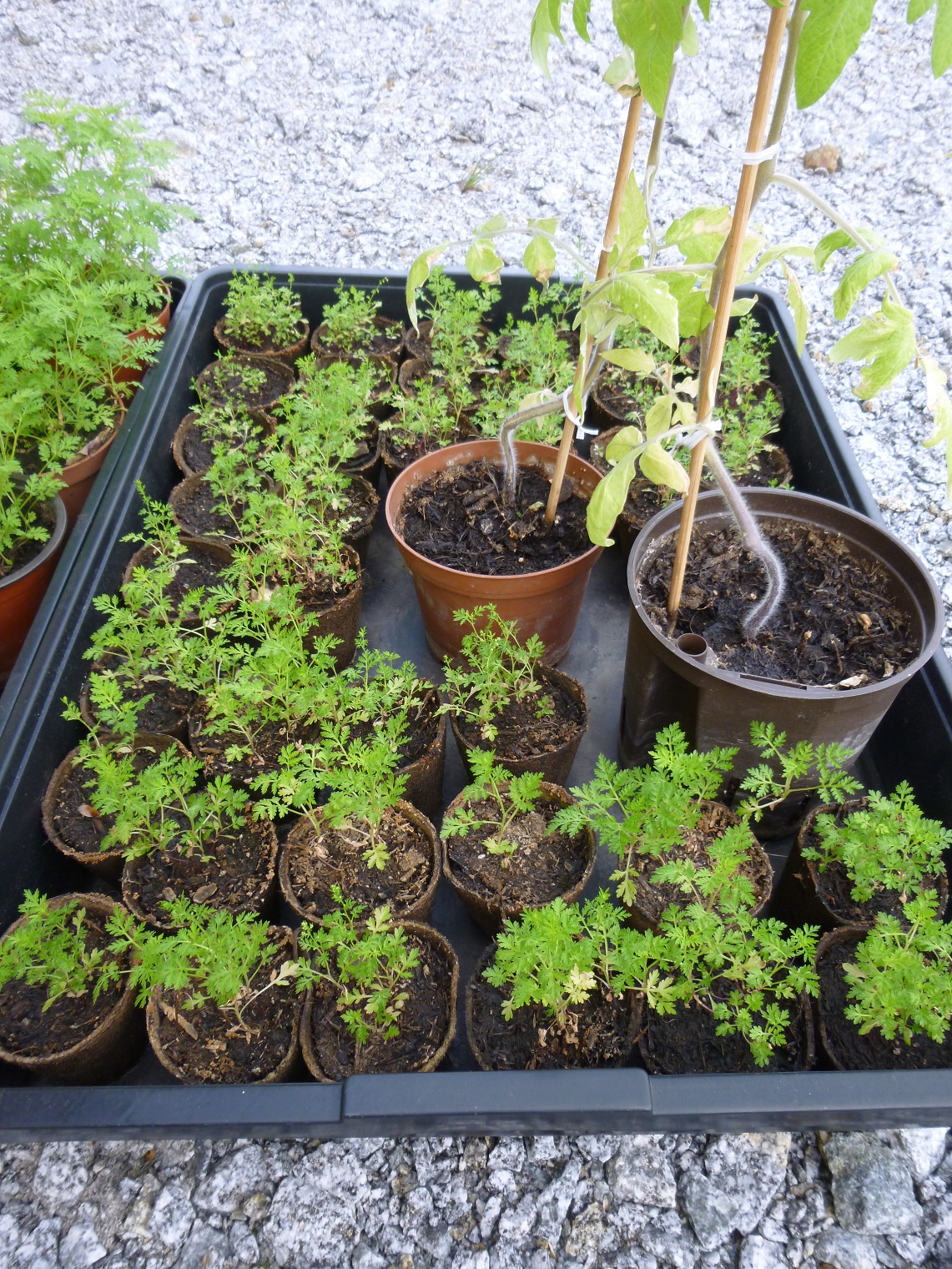 Nach ein paar Wochen konnte man schon sehen, wie groß die Beifußpflanzen neben den Tomatenpflanzen geworden sind.
