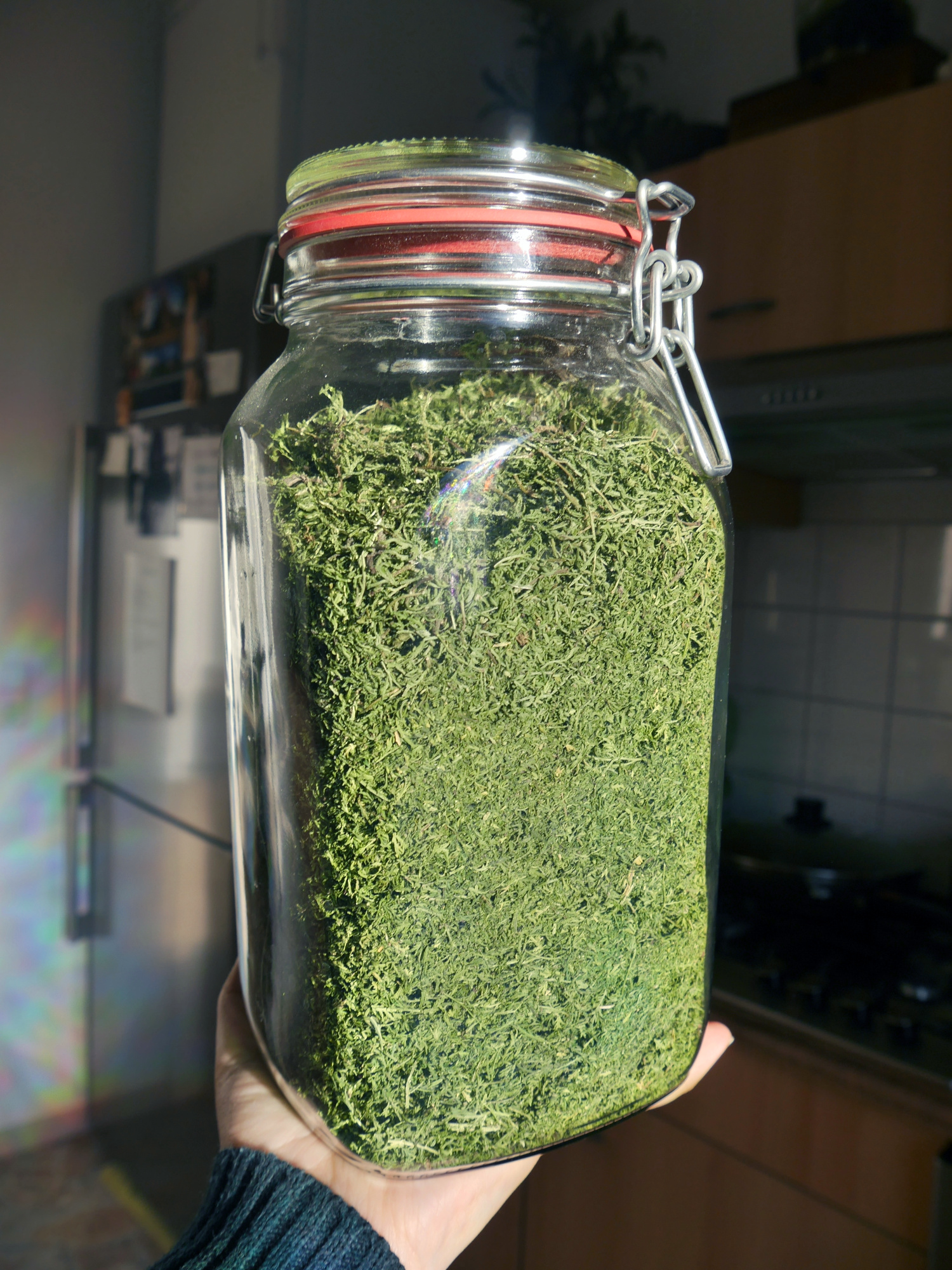 Das ist unser großes Vorratsglas mit Artemisia aus eigener Ernte. Wir sind auch ganz schön stolz darauf.  Werdrot