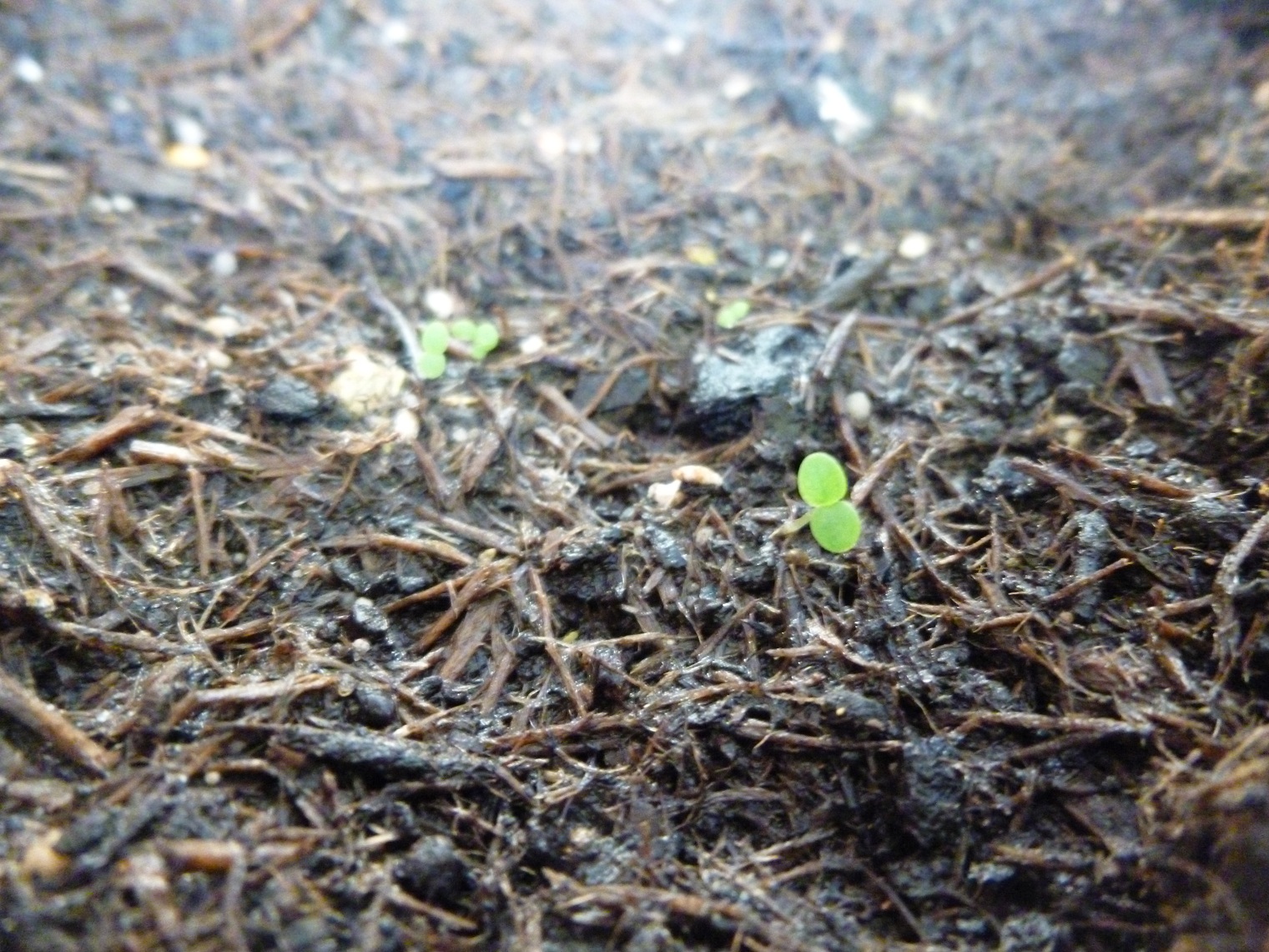 Die Arte ist nicht ganz so groß geworden wie ihre Freunde draußen, aber zu meiner Freude habe ich drei Setzlinge im Gewächshaus entdeckt. Die sind heute in Töpfe umgezogen und sind ca. 20 cm hoch, also für die Jahreszeit sehr viel größer, als wenn man sie in Töpfchen aussät.