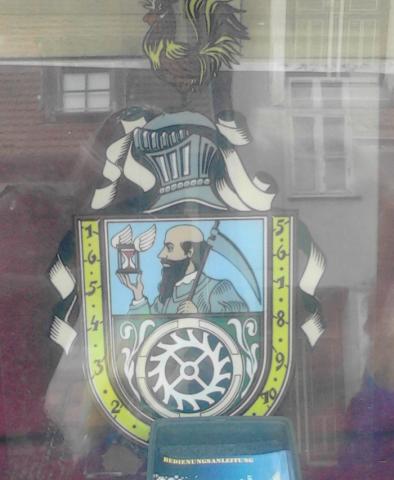 Ich habe dieses Wappen bei unserem Uhrmacher gesehen, und die "Zeit" ist in ein paar Symbolen gut erkennbar.