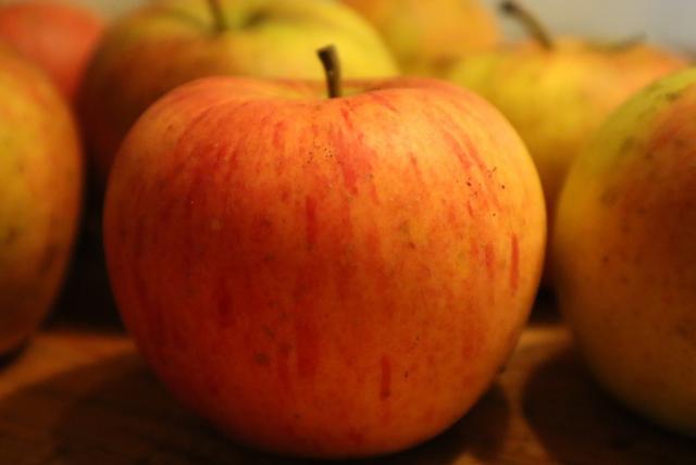 Jonagold - Oktober (lagerfähig bis März). Jonagold ist ein super Apfel, den kaufen wir gern im Bio-Markt. Er ist eine Züchtung aus dem "Gelben Köstlichen".