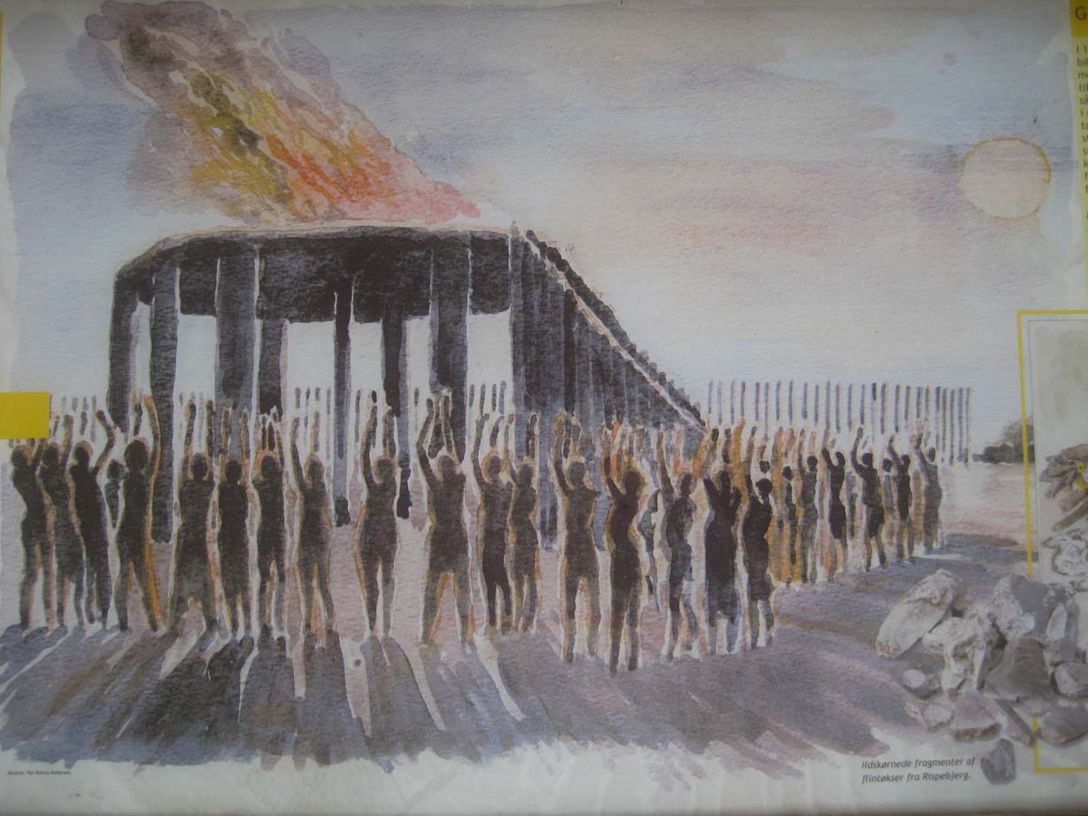 Mit lohenden Fackeln in der Hand durchschreitet die Gruppe in der Dämmerung den Wald und nähert sich dem heiligen Ort. Hier werden sie bereits von den Priestern erwartet. Der Wächter übergibt die Gruppe der Seherin, und diese sortiert zum letzten Mal. Mit gezogenem Schwert steht der Wächter neben der Priesterin, bereit jeden zu eliminieren, den die Völva für unrein und damit für unwürdig der Ritualteilnahme hält.
