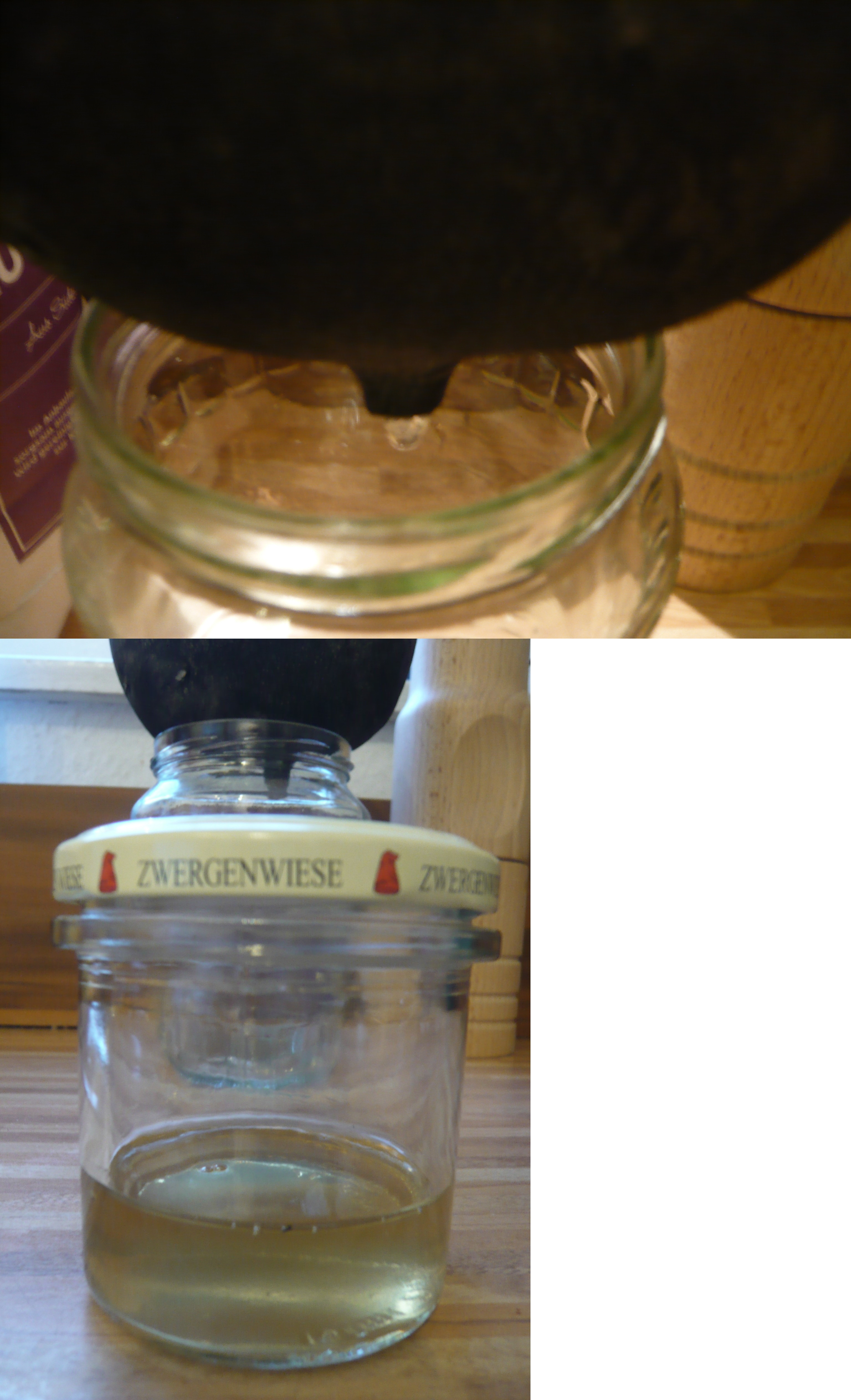Ich habe mein Glas eine Nacht stehen lassen und dann abgeseiht.