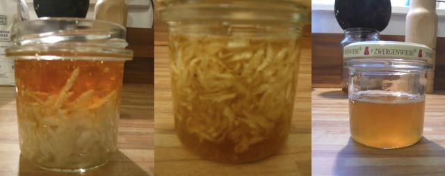 Mein Versuch: Ingwer, Zitrone, Xylit und Propolishonig (Mischung aus Propolis und Honig).
