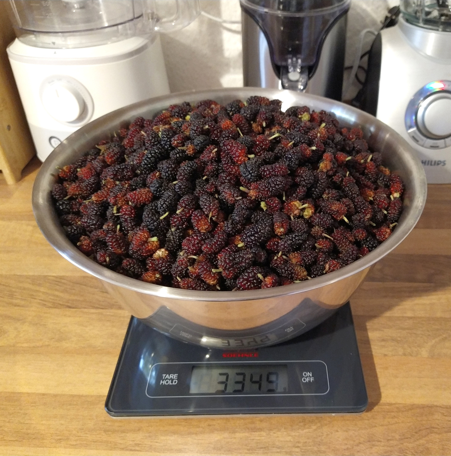 Wir haben heute morgen unsere bestellten Erntenetze unter den Maulbeerbaum gelegt. Keinen Tag zu früh!  Wow