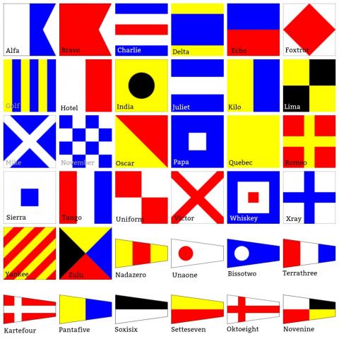 Andererseits: Laut dem Flaggenalphabet steht die Farbe Gelb jedoch für den 17. Buchstaben im Alphabet (geheime Bedeutung), und das wäre dann das: Q.