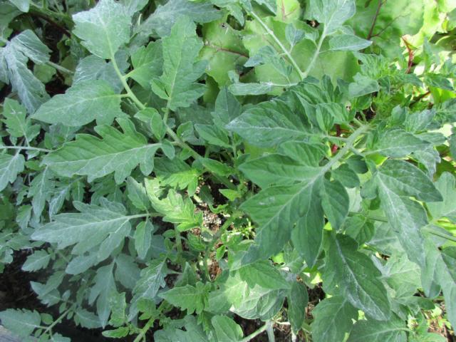 Das Weißliche ist übrigens Gesteinsmehl. Hat vielleicht irgendein Unkraut den Grünkohl überwuchert? Oder war was Verkehrtes in der Samentüte?