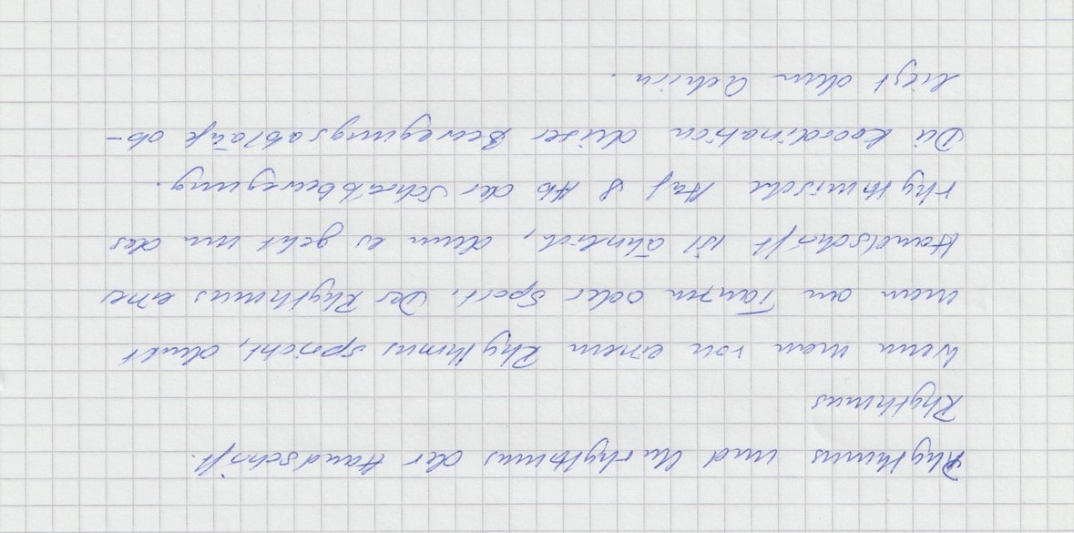 Eine rhythmische Handschrift symbolisiert eine durchgehend einheitliche Schreibrichtung, Stil, Buchstaben- bis Zeilenabstände und Druckstärke.