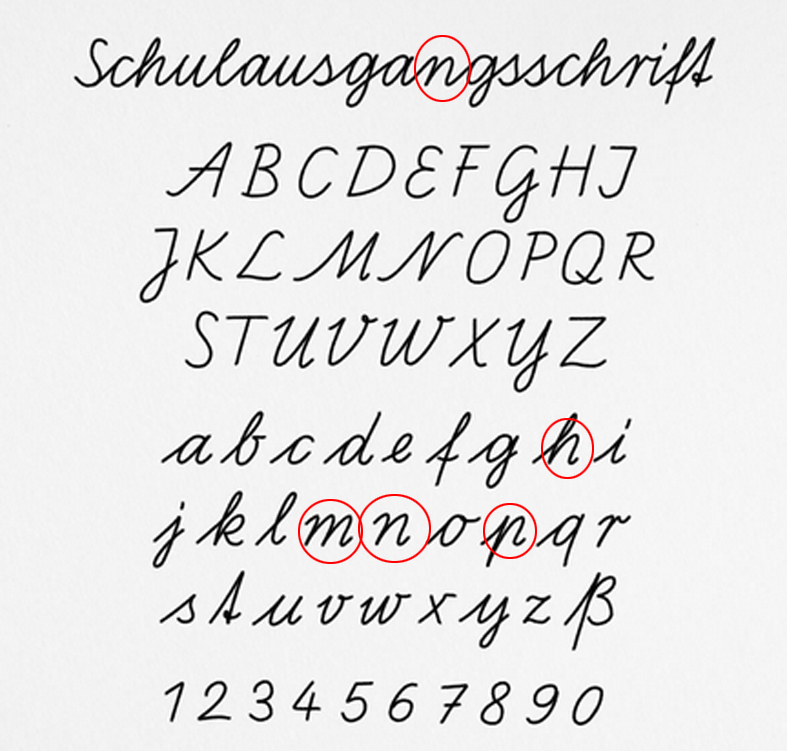 Vor all dem haben die Menschen u. a. Sütterlin gelernt, eine völlig andere Schrift mit teils völlig anderen Buchstaben. In dieser Schrift werden Winkel noch bevorzugt, bevor die Arkadenschrift Einzug hielt.