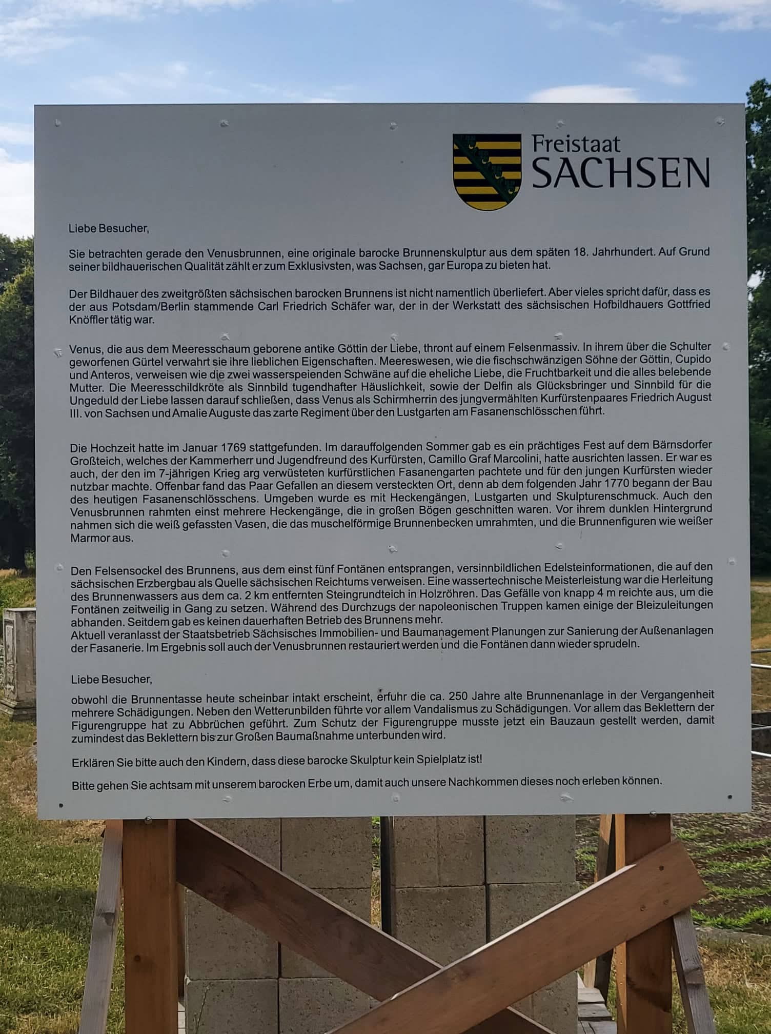 An einer häßlichen riesengroßen Informationstafel vor Ort wird Venus als die Schaumgeborene beschrieben.