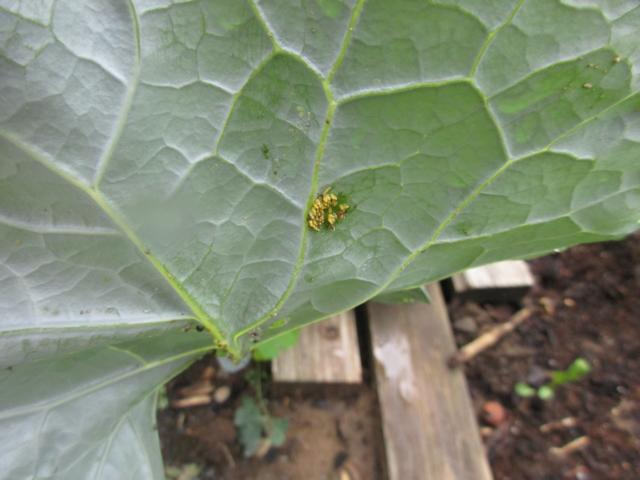 Heute morgen sah ich einen weißen Falter zum Kohlbeet fliegen und auch einzelne Pflanzen darin anfliegen kurz. War das etwa ein Kohlweißling? Also ging ich mal nachsehen, eigentlich war er viel zu kurz dort, um Eier abgelegt zu haben. Ich habe auch keine gefunden.