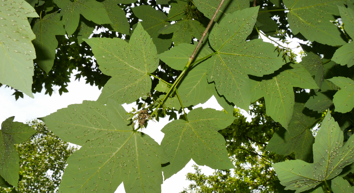 Es sind auf jeden Fall Läuse, denn sie verkleben die Ahornblätter mit ihren Ausscheidungen, und sie gehen auch gezielt an die Gemüsepflanzen. Lächeln