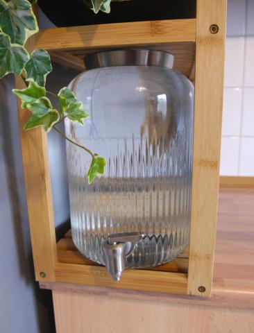 Wir füllen das Osmosewasser nun immer in einen 8-Liter-Wasserspender. Diesen nutzen wir schon seit über 4 Jahren, er ist sehr hochwertig: