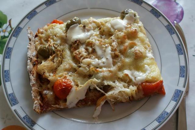 Arnikas Zuchhiniauflauf hatte mich heute morgen hungrig gemacht, also dachte ich mir, das machst du doch gleich mal nach. Da ich aber keine Eier im Essen mag, entschied ich mich lieber für die gute alte Pizza.